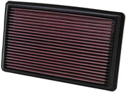 K&N washable, reusable High-Flow Air Filters feature a state-of-the-art design of layered, oiled cotton media engineered to improve airflow and capture contaminants, and are designed to provide an increase in horsepower. Each performance air filter is reusable, engineered to last for the entire lifespan of your vehicle, and backed by K&N's 10-Year/Million Mile Limited Warranty. K&N drop-in replacement filters are designed to install easily into your factory air box. Upgrade today and start enjoying superior airflow and superior performance from K&N's most popular product!