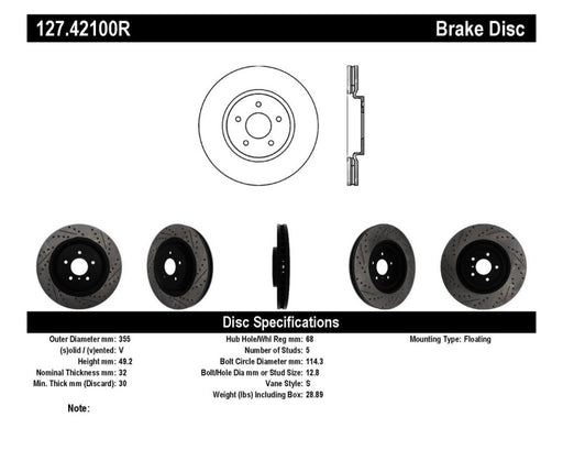 View full detailsStopTech Infiniti G37 / Nissan 370Z SportStop Slotted & Drilled Front Right Rotor