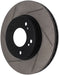 StopTech Slotted Sport Rotors are 1-piece direct replacement brake discs for factory brake systems and stock calipers that look great behind your wheels – and offer significantly improved braking performance. The unique slotting aids with heat and brake dust dispersal; prevents glazing of the pads; adds bite and improves wet and dry braking performance. Built to last; the black e-coating provides protection from corrosion and the high carbon metallurgy (in most applications) offers quieter operation; better crack resistance and increased performance.